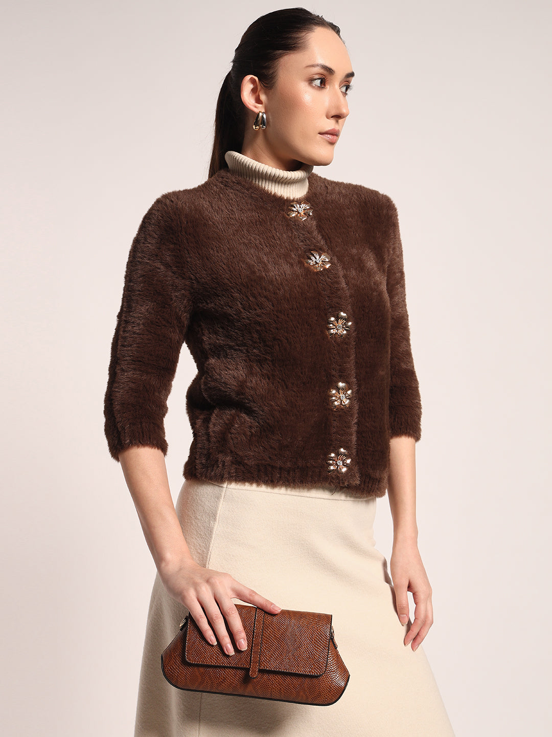 A modern take on the traditional batua, this clutch comes with a detachable woven metal shoulder strap. The flap closure with hidden magnets secures space for your mobile, cash, 3 card slots, and key holder. Versatile and chic, it pairs effortlessly with both Indian and Western outfits, perfect for any occasion.