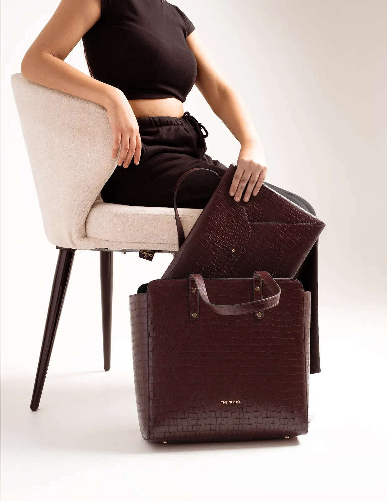 Introducing the Beyond+ Croco Tote & Grace Laptop Sleeve Combo — where fashion meets functionality. Crafted in premium croc-textured vegan leather, the Beyond+ Tote is designed to carry your world in style, with ample space for daily essentials and a dedicated compartment for your laptop (up to 16"). Paired with the sleek and structured Grace Sleeve, this combo ensures your tech is secure and your style game strong.