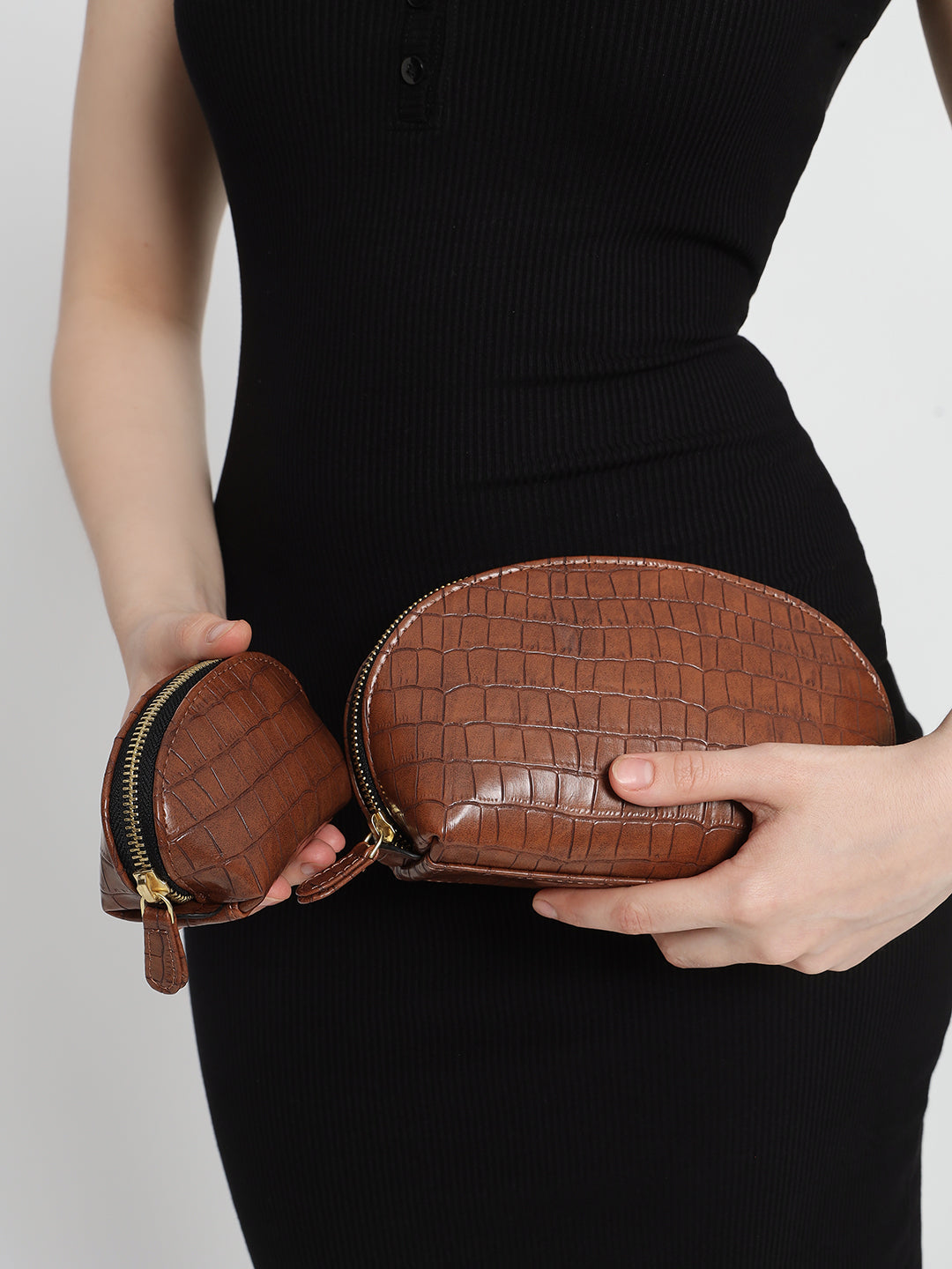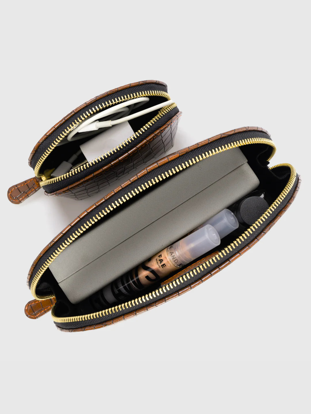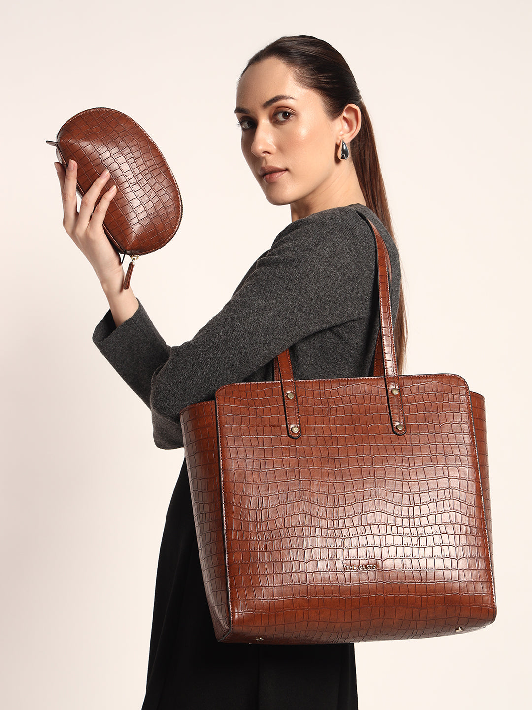 Beyond+ Croco Tote with Zipper Tan + Cosmos Pouch Combo