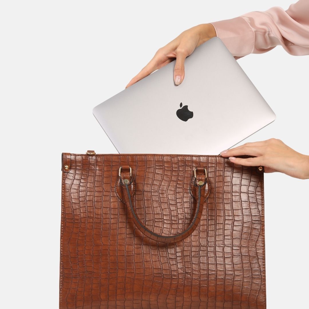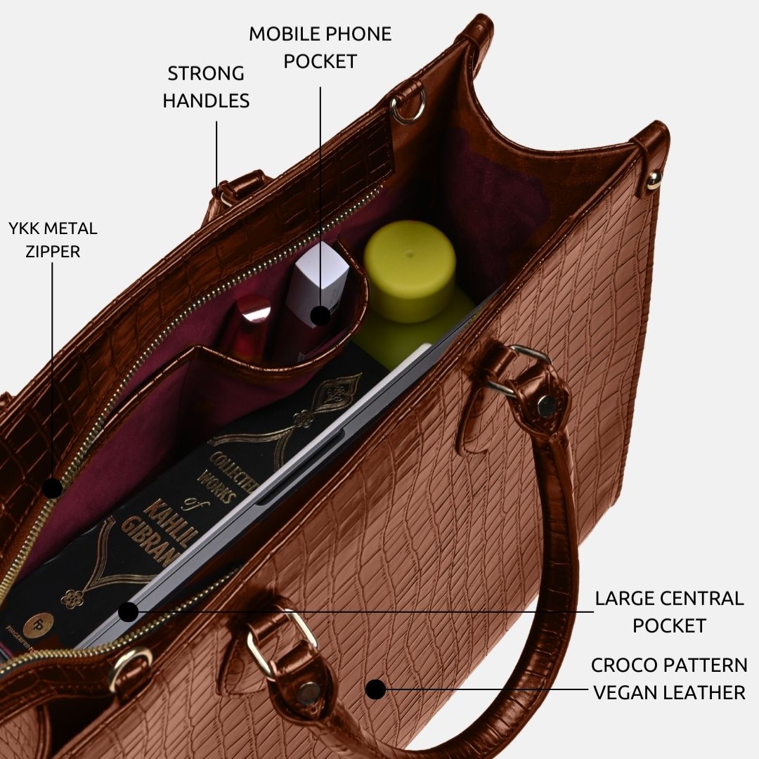 Celeste Croco tote showcases exquisite Croc Textured Vegan Leather for utmost sophistication and elegance, epitomizing premium quality and style.
