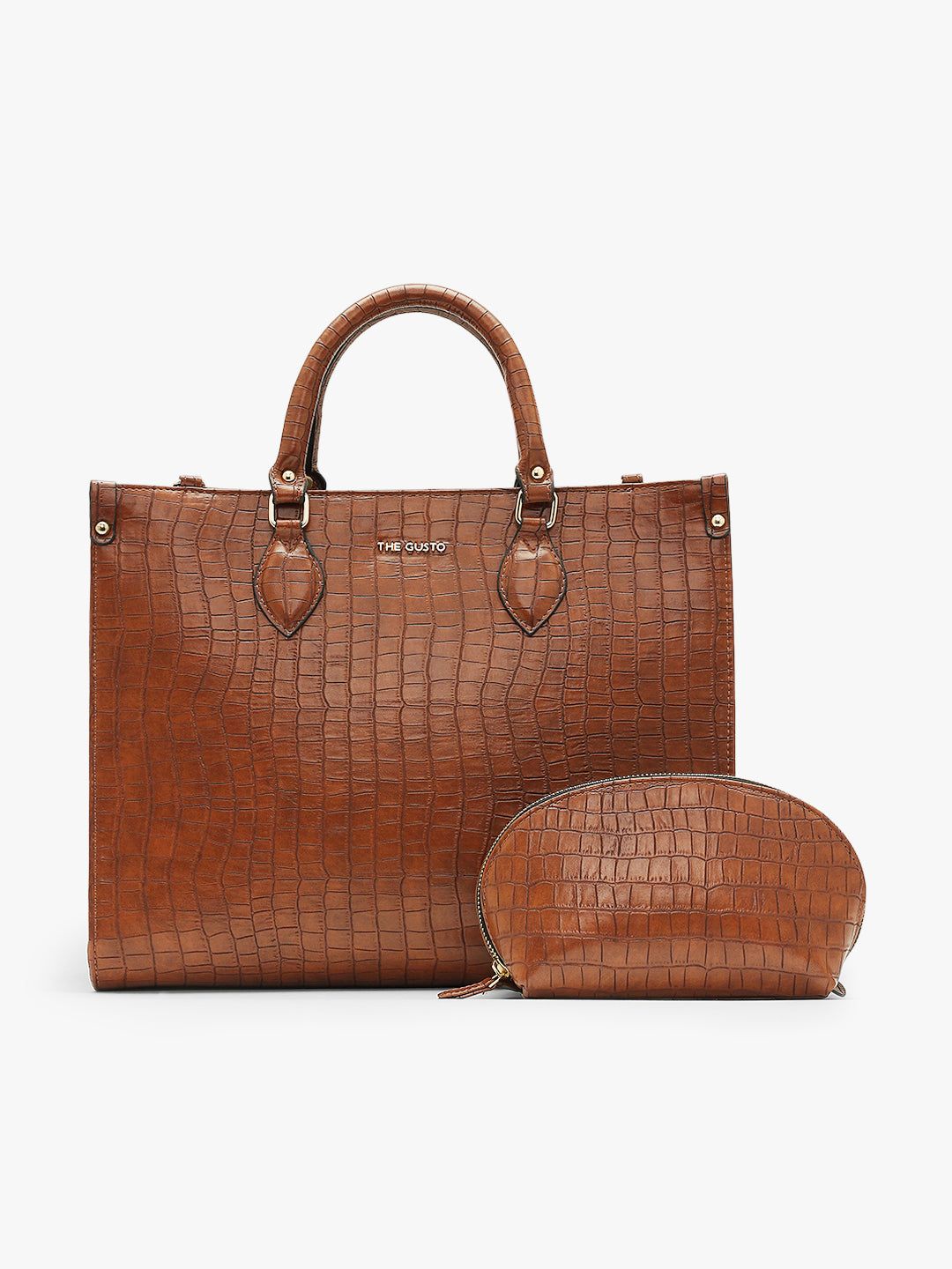 Save big with this Combo of our best-selling Celeste Tote and newly-launched Cosmos Croco Pouch set. Quality craftsmanship yields storage and style for any journey. Make a statement while organizing items in style.
