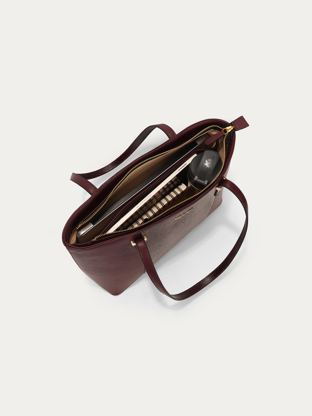 Iconic tote showcases exquisite dual Textured Vegan Leather for utmost sophistication and elegance, epitomizing premium quality and style.