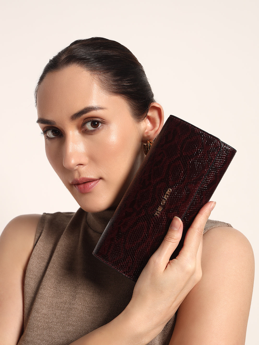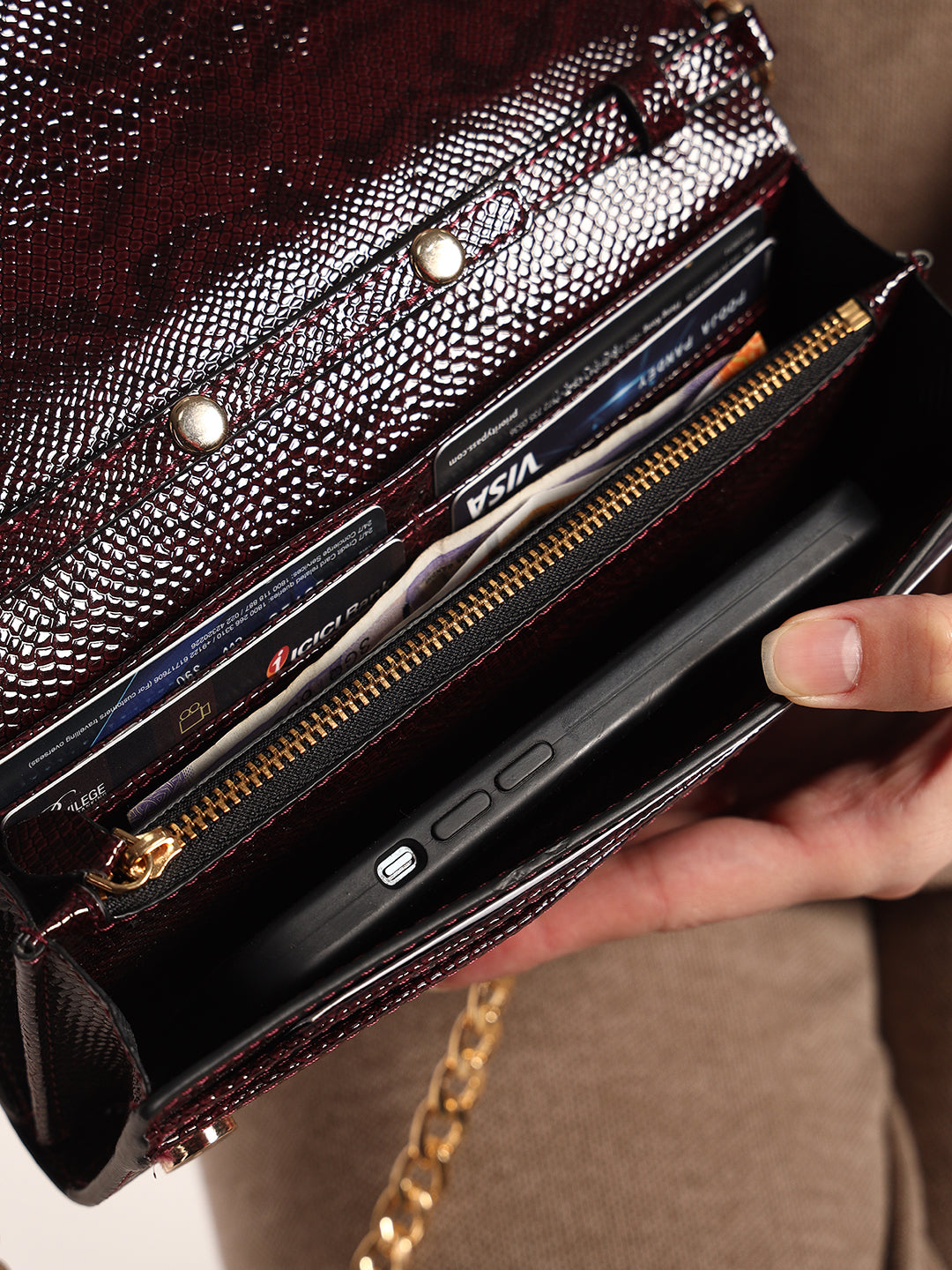 The Zeena Wallet Sling showcases sleek, textured vegan leather, combining timeless elegance, modern functionality, and impeccable craftsmanship in every detail.
